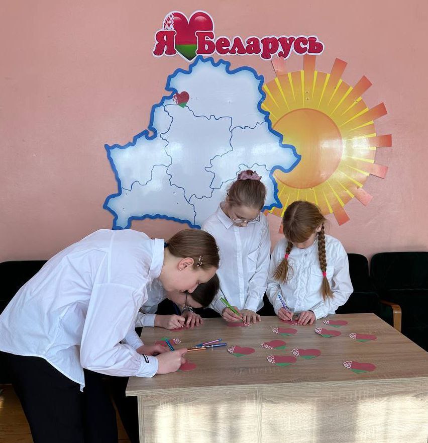 Участники доказали, что любовь к Родине живёт в каждом сердце! Ребята с большим энтузиазмом украшали импровизированную карту страны сердечками. В каждом сердечке - самые теплые пожелания: мира, добра, процветания и счастливого будущего для родной Беларуси. Ярким продолжением акции стал патриотический флешмоб, подаривший всем присутствующим заряд хорошего настроения.